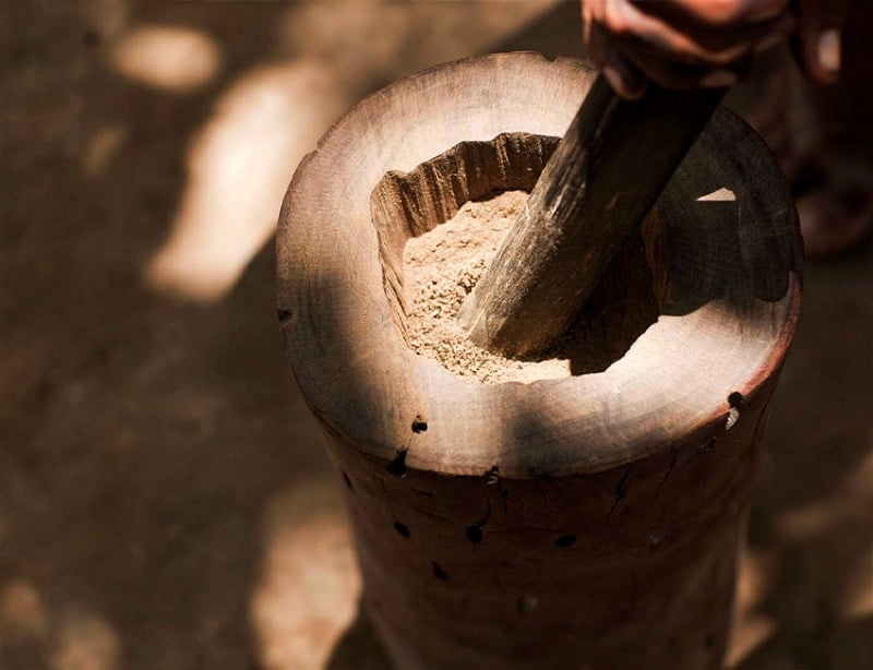As árvores sagradas são escolhidas de forma consciente e respeitosa. A madeira ou casca é queimada cuidadosamente até atingir o ponto ideal, produzindo uma cinza leve, clara e rica em energia.
